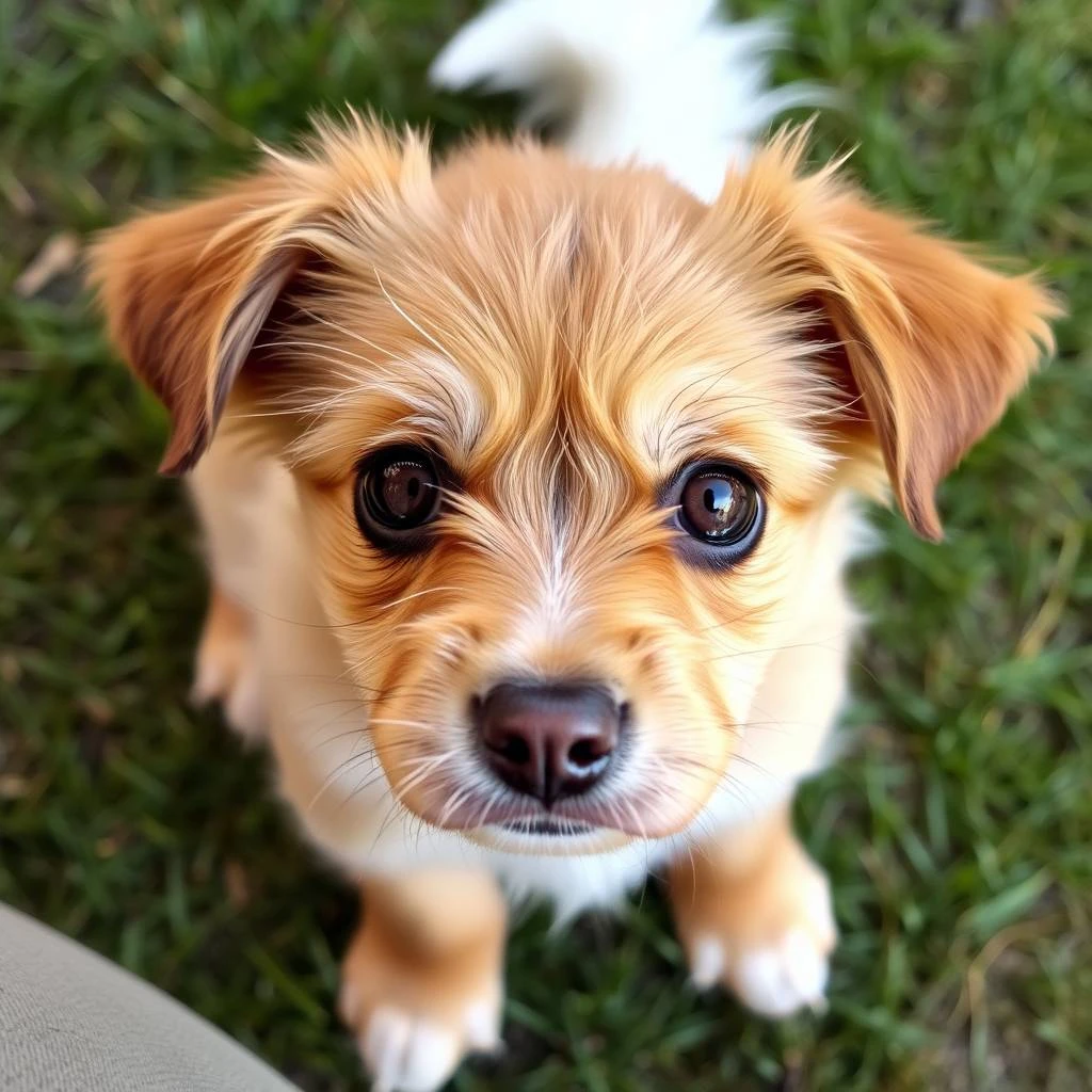 Cute dog with brown eyes and a white tail