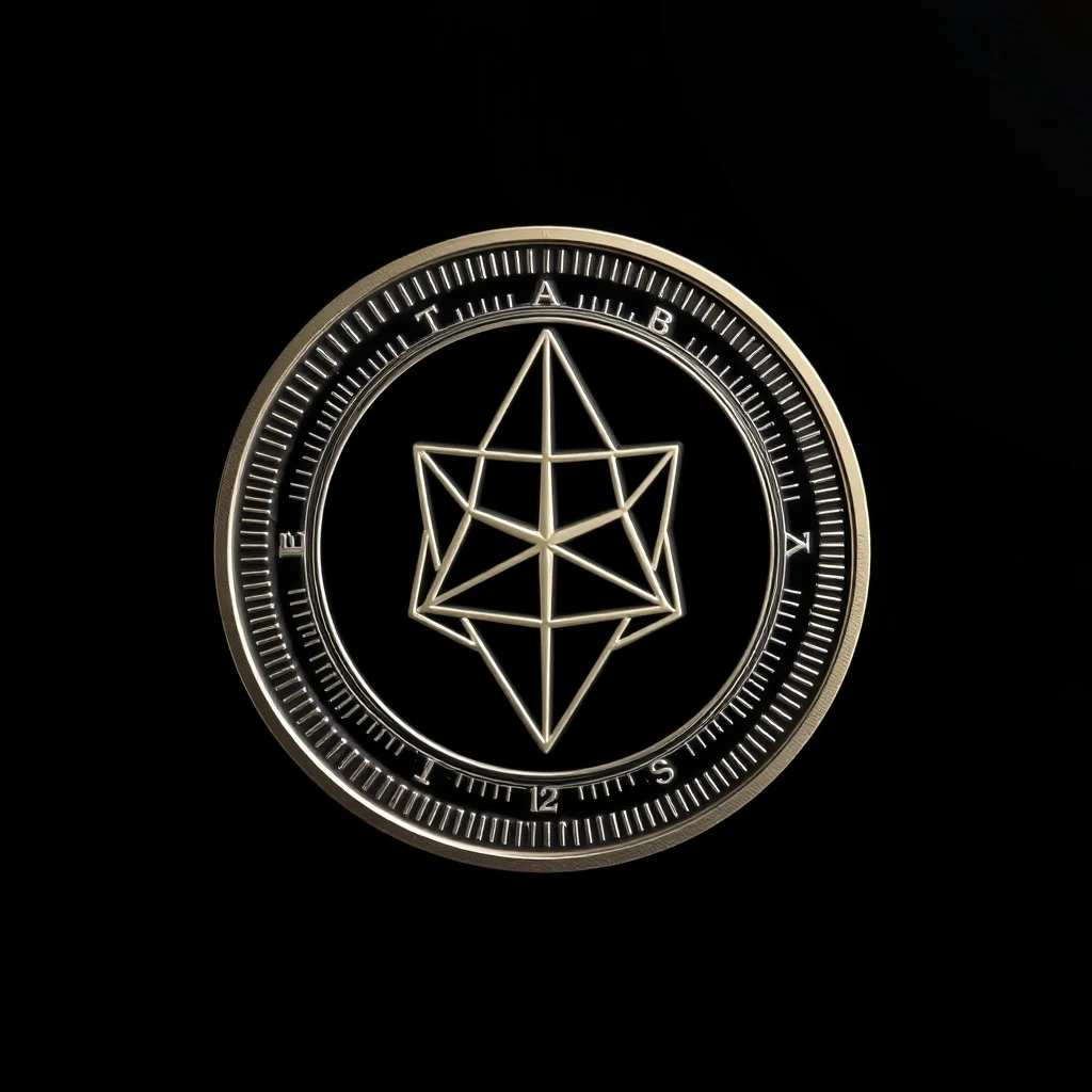 Create cryptocurrency image using Cardano logo front view. Use black color mainly as background.