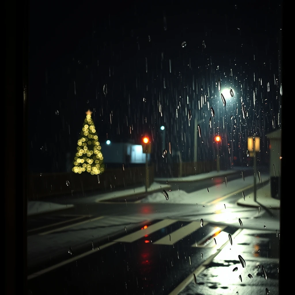 dark rainy x-mas night, someone spy from window in dark