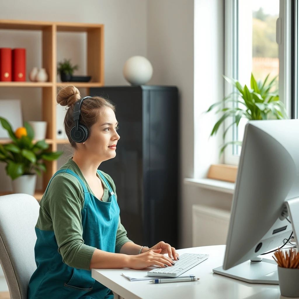 Household assistant working in computer