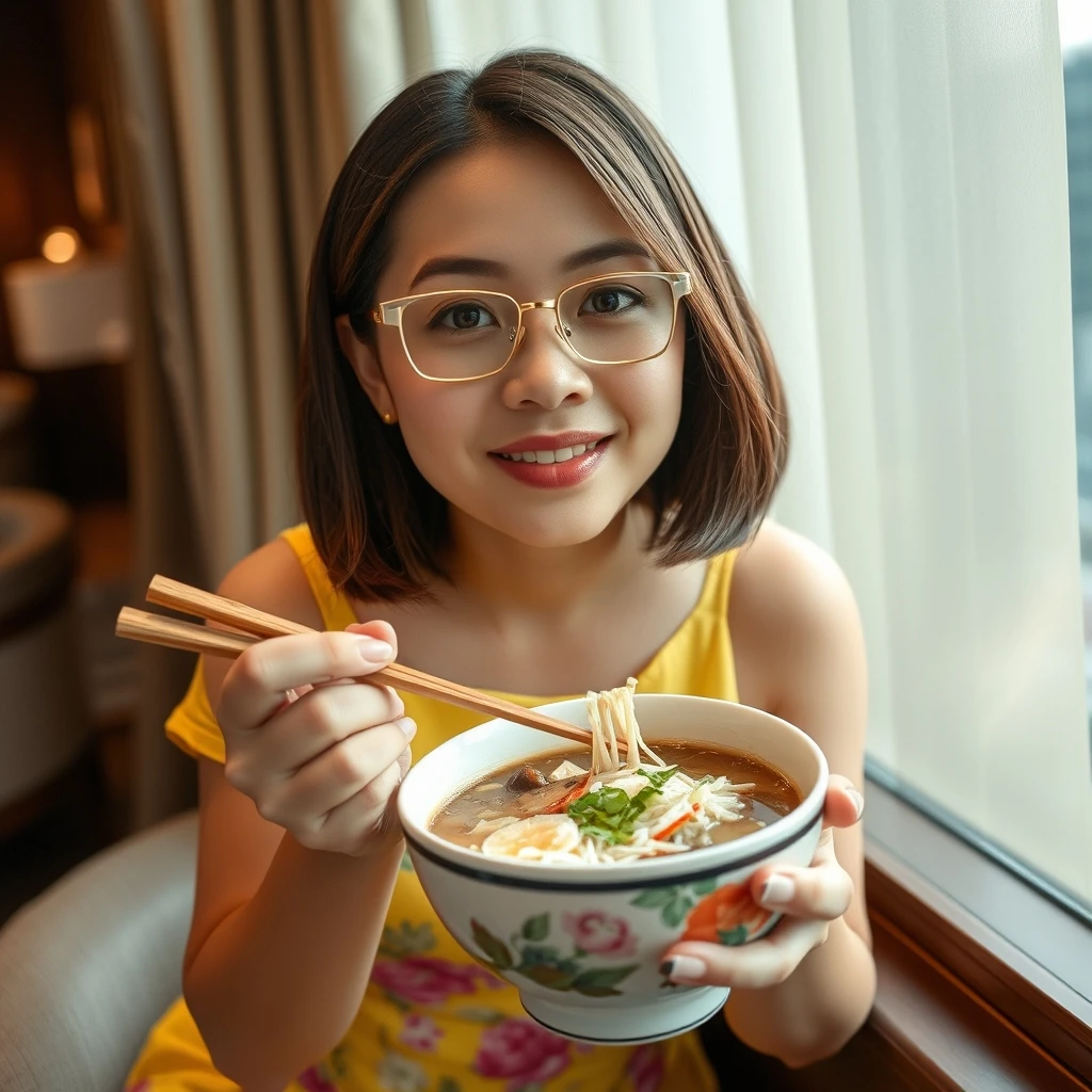 Nini Lee: eating pho noodle soup in 5 stars luxury hotel