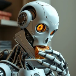 Half human half robot eating food