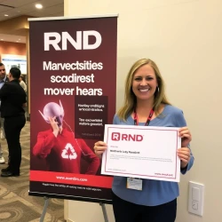 A lady hold an RND innovations advertising board