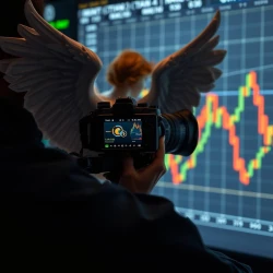 Camera angel from the back of a crypto trader who is analysing chart.