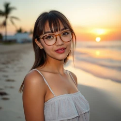 Jane Doe: on the beach with sunset view