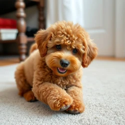 Brown poodle dog play on the carpet