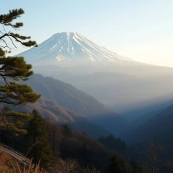 A beautiful mountain with snow on top. View from a beautiful valley in Japan