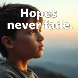 A meme with "Hopes never fade" text. a boy look faraway and waiting for something