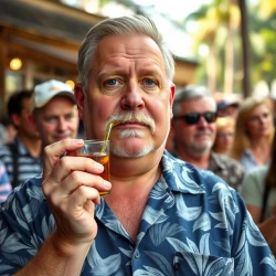 Donut Trump: drinking a tea crowd watching
